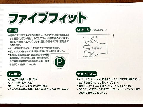 使い捨て手袋 『ファイブフィット手袋 』 Mサイズ 100枚入