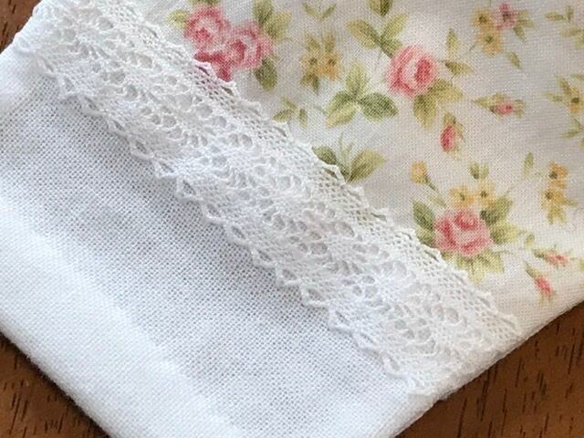 表側はプリント生地でパッチワーク風に、内側はさらし生地を使用しています。
