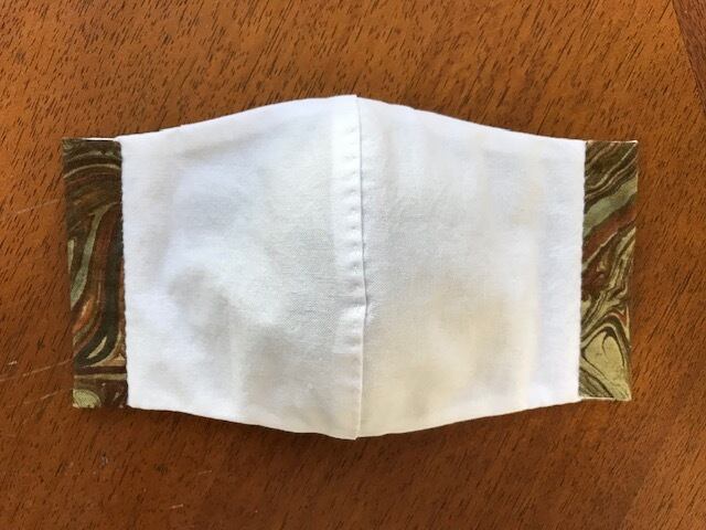 表側にマーブル柄プリント生地、裏側は白無地のシーチング生地を使用しています。