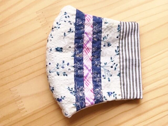 【ハンドメイド】立体コットンマスク M リバーシブル ポケット付き 《パッチワーク×花柄》