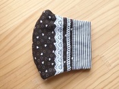 表側はプリント生地でパッチワーク風に、内側はさらし生地を使用しています。